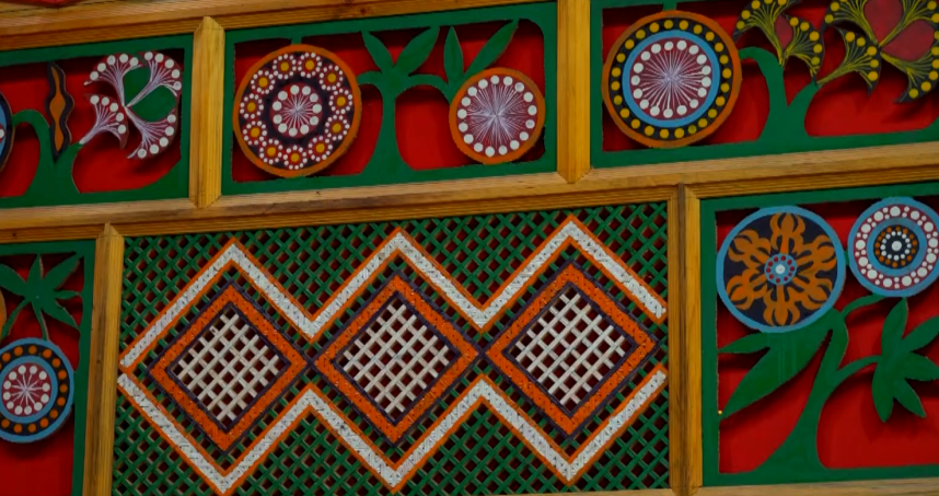 装饰部位主要是屋内板壁、屋檐、门楣、斗拱、窗,图案多为日、月、星、花、草和动物图案,突显出强烈的民族性、艺术性、实用性。