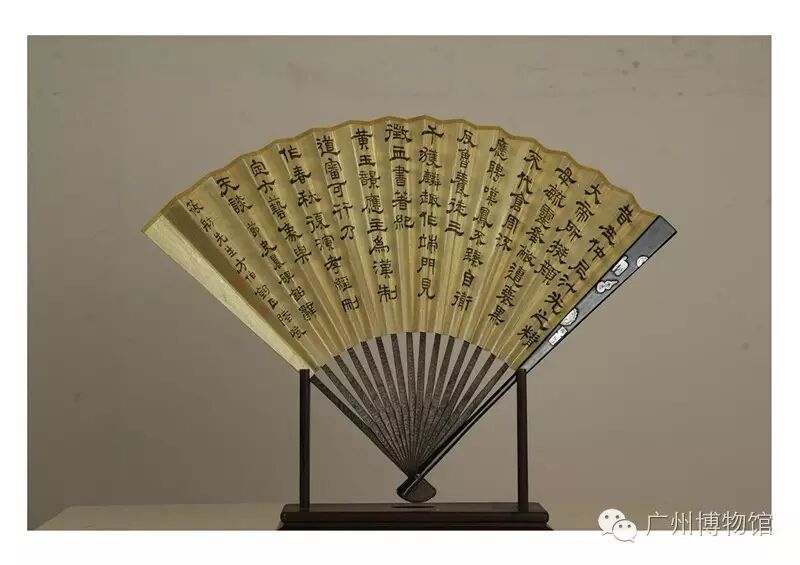 广州博物馆正在展出的《苏州样 广州匠——苏广明清工艺精品联展》,有这样一件展品,它远看是一把普通的扇子,但如果走近细看,扇骨的工艺之美令人惊叹。扇骨大边外侧涂上一层光亮的黑漆,再镶嵌螺钿,由螺钿组成图案,再用小刀在漆上将图案轮廓刻画出来。扇骨黑白分明,而螺钿组成的图案闪烁光亮,可谓低调而不失奢华,细节彰显品质,这种精美的工艺叫嵌螺钿。