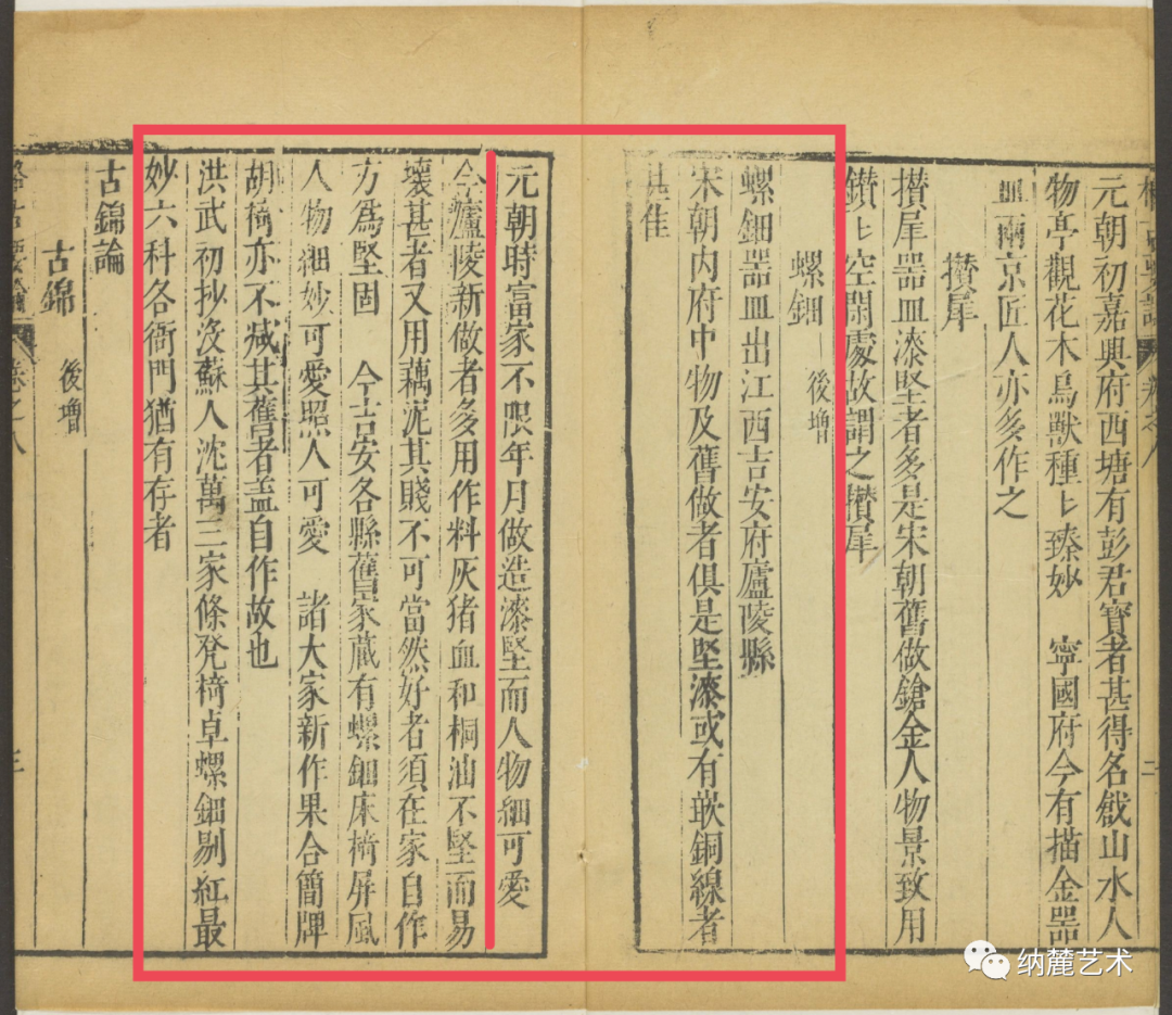 一、壳片古者厚,今者渐薄。杨明生活的晚明,流行的是薄螺钿而非厚螺钿;