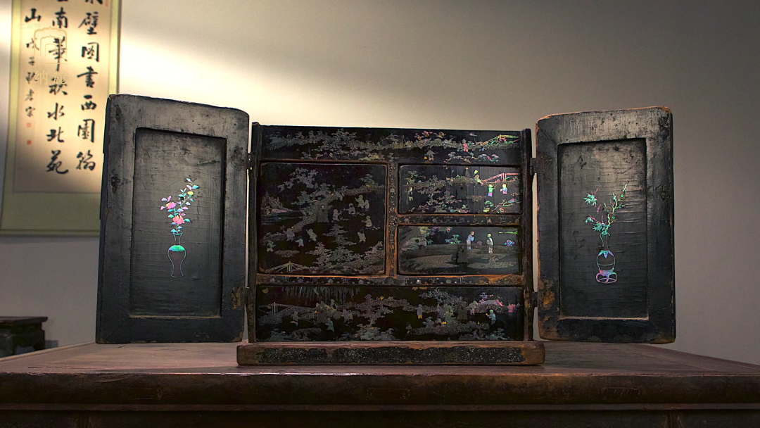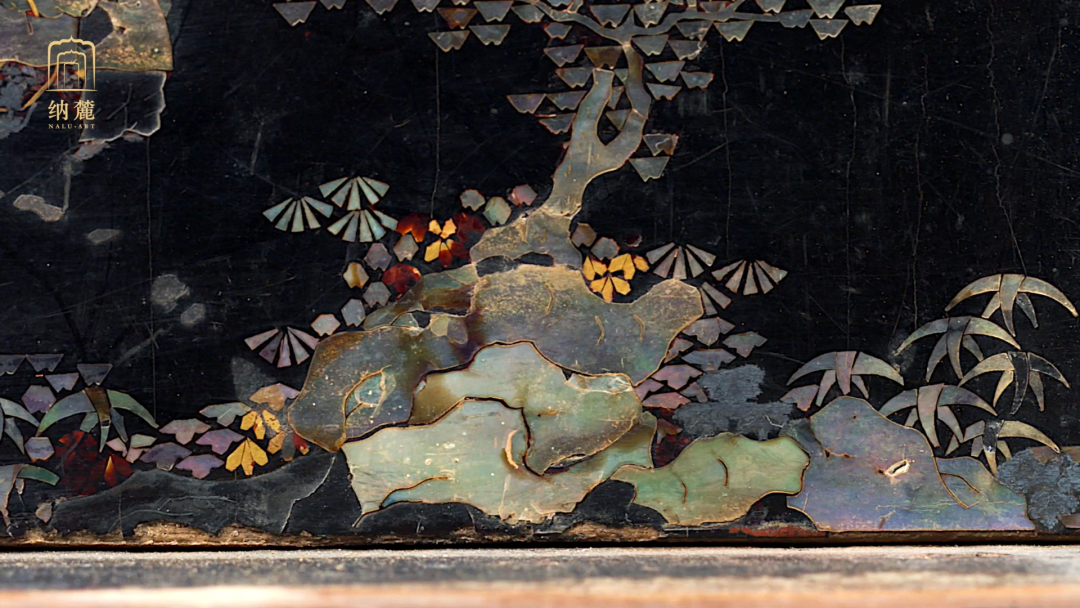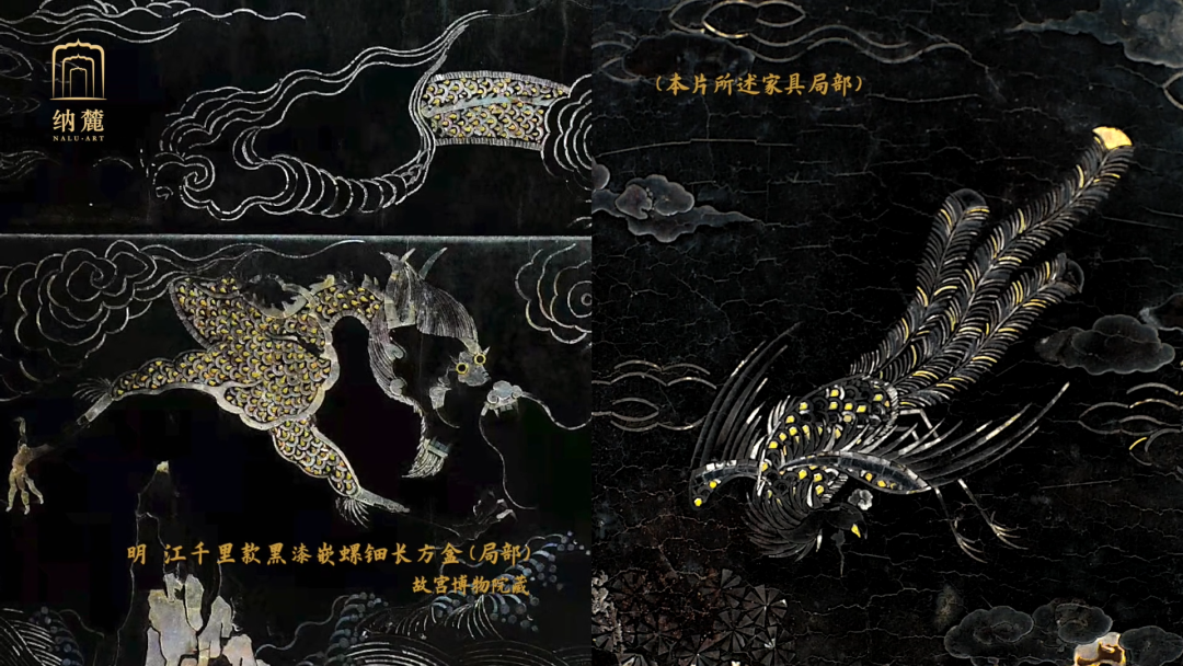 视频中的官皮箱并非用“螺钿”二字即可简单概括,在我们的特写镜头下,所有细节显露无遗,而这仍然要结合《髹饰录》这部著作去审视。