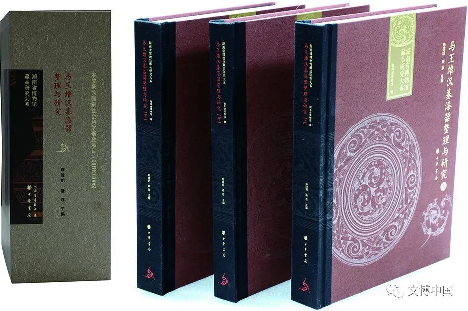 《马王堆汉墓漆器整理与研究》全书八开本三巨册:第一册420页,包括原始资料的整理、铭拓释文与遣策简文考释,并附录13项检测分析与鉴定报告。第二册317页,为25篇相关研究论文的集录,其中部分论文之前曾发表,收录时稍做修改。两册合计100多万字。第三册409页,为图录,收录彩色照片2519张、线图536张和器铭拓片381张。本书的突出特点有三: