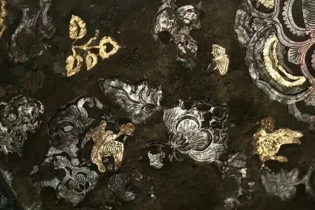 金银平脱工艺,说简单点就是升级版的贴金。工匠们将金银熔化,制成箔片,并剪镂成各种花纹。