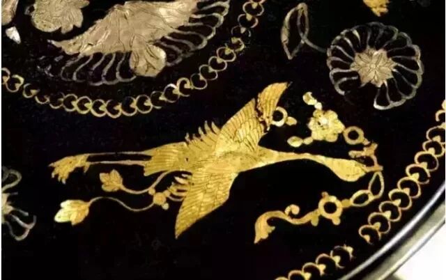 早在汉代时,古人就有了漆器贴金的装饰工艺,将金、银捶打成极薄的薄片,剪出纹样,粘贴在漆器上。虽说好看是好看,但就是金箔太容易被磨损和脱落。
