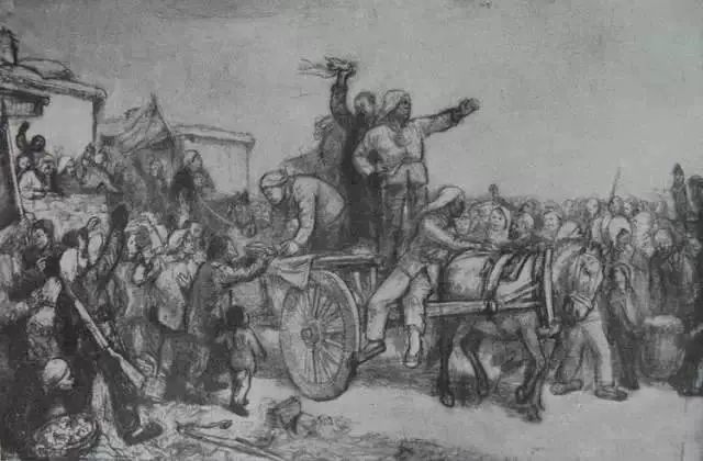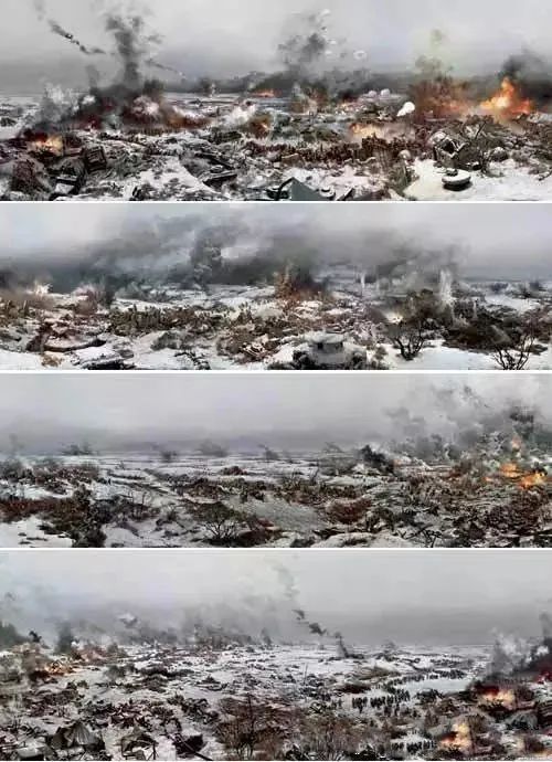 这幅画将我们带到了淮海战役的战场上,艺术家们运用全景画所特有的造型手段,将一个个有重大影响的历史瞬间,凝固在150多米长,18米高的画布上,在特定的灯光,音响以及逼真的地面塑形,仿真道具的烘托之下观众在特定的距离之内产生出强烈的视幻觉,从而使之置身于巨大的临场氛围之中,这种感染力与震撼力是我们常见的架上绘画所不能与其相比的。