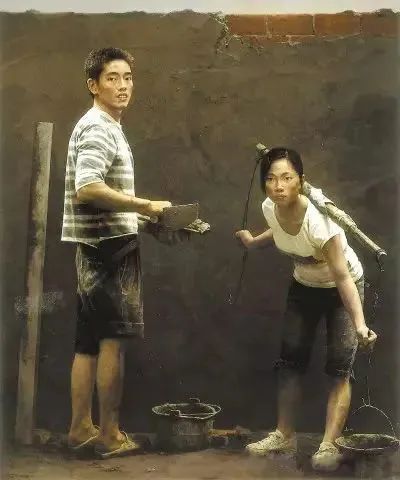 《兄弟》是当代现实主义艺术中“农民工”题材的代表作品之一。此作虽为水粉画,但强烈的笔触感和厚重的肌理感却展现出油画般的表现力。