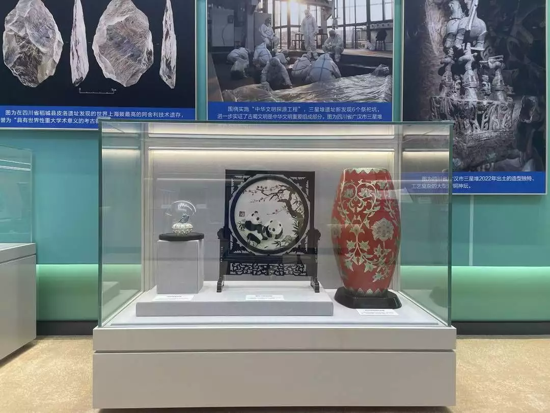 “这件作品和其他作品一起,能够代表我们非遗,代表我们工艺美术传承者和从业者们入选展览,我觉得非常开心,非常自豪。”在本次展览中,这件漆器与蜀绣双面熊猫画、珐琅鱼首饰盒等其他作品一道,作为四川非遗的代表作品展出。