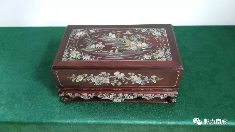 又称“花镶嵌”,是以各种天然玉石、螺钿、兽骨、牛角为原料,采用搜、磨、推、铲、镂、雕等技法,制成人物、花鸟、山石等浮雕,镶嵌于漆胎之上。