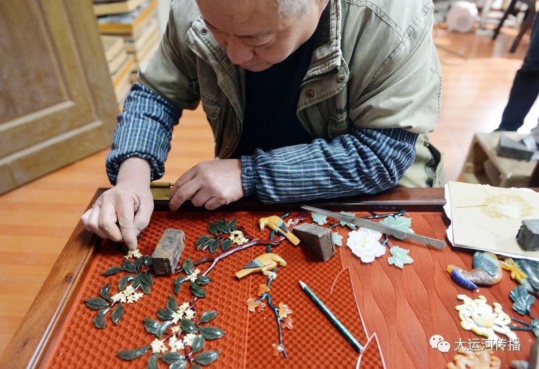 扬州漆器是大运河沿线具有代表性的非遗技艺,它的传承发展离不开漆艺大师与漆器企业的共同守望。陈林安所在的扬州经典漆器有限公司,漆艺品涵盖纯雕漆、雕漆嵌玉、点螺、楠木雕等十大类。经典漆器负责人陆文龙介绍,公司特别注重漆器工艺人才,目前拥有国家高级工艺师数名,省市级工艺美术大师十余名,漆器珍品在全国性工艺美术精品展中屡获大奖,有不少大师作品被来自泰国、中东等地的国外客户收藏。