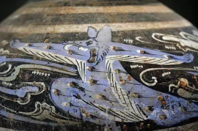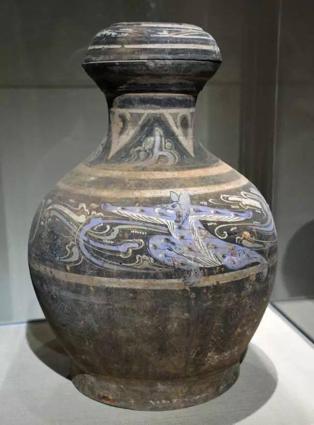 这尊彩绘陶壶,其绚丽的彩色颜料使用和自信奔放、挥洒自如的黑色笔触而达成完美的装饰效果展现了西汉时代个性张扬的一面。