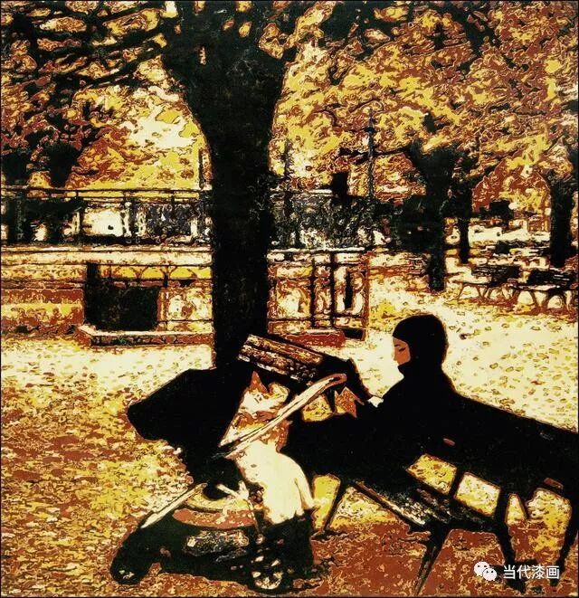 《欧行扎记之金秋公园》 漆画