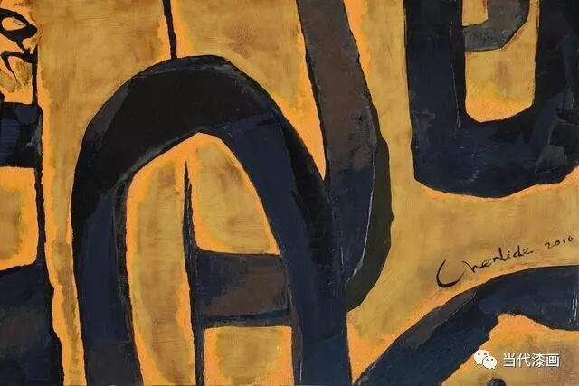 大漆所表现出来的天趣盎然的朴素意味,与西方造型色彩的创作的手法自然相遇浑然一体,不同的东西却又如此和谐的呈现在一幅具有哲学叙事色彩画面中,可以看出陈立德对于传统大漆艺术语言的深厚造诣,以及扎实的西方绘画功底。即使是抽象作品,也可以窥探到画面结构的严密性、起承转合的有序性以及构思与设计并的隐喻性,使作品带有独特的诗学意味和形式美感。