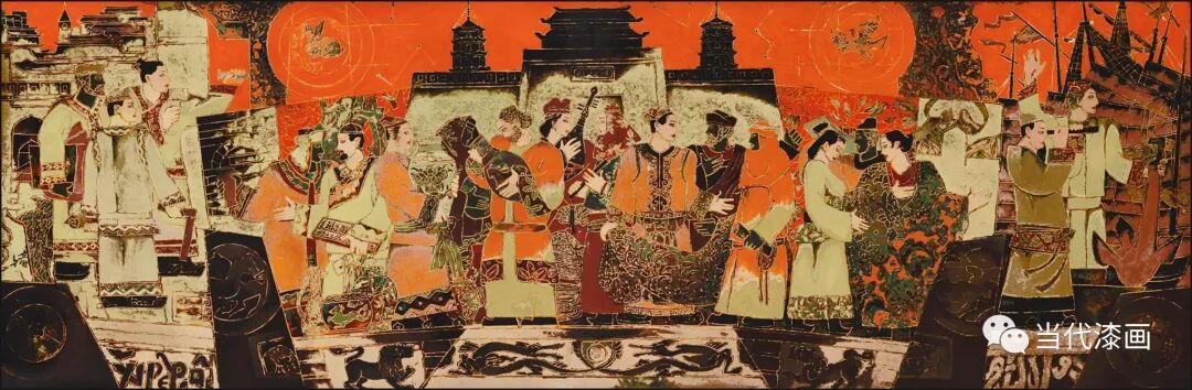 艺术家将漆画视为一种独立的画种,不但关注传统天然大漆的材质特征与技艺的醇熟运用,更注重大漆作为绘画语言的独立性构建。将作品置于绘画的专业化诉求和审美特性的框架下,结构、色彩极其讲究,节奏与肌理的设置地道而精美,个人的思想理念流贯穿其中,从内容到形式都鲜明地表达了时代特色,同时也大大拓展了漆艺的内涵,赋予传统文化符号新的生命力。