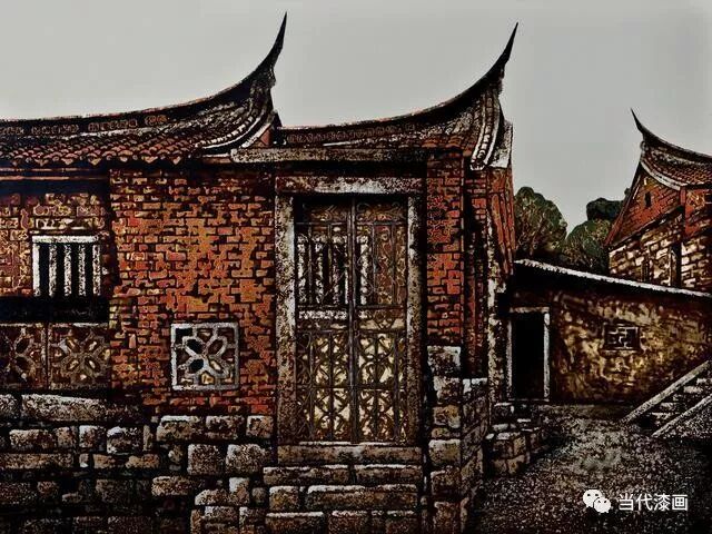 《闽南红砖老厝》 大漆 银 2016年