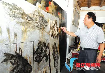 “金鱼积”51年前与漆器结缘,画了30多年漆画。他说,靠着皮胎漆器髹饰技艺,阳江漆器与北京漆器、扬州漆器、福建漆器、四川漆器齐名,如今自己要沉下心来,把这门几近消失的技艺传承下去。