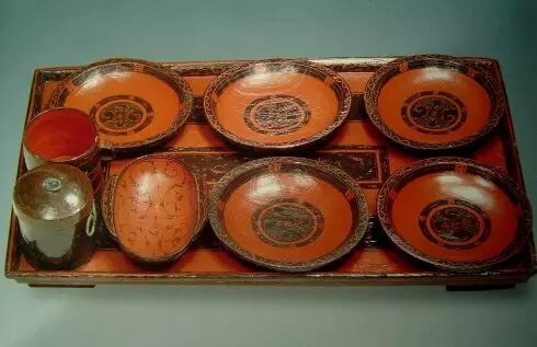 就近畿(日本)和关中地区(中国)传统而言,给新生儿购置用品时经常会买一色漆器的小餐具。其一漆器轻巧耐用,小孩子平常吃饭想怎么摔怎么摔;其二漆器过于耐用轻轻松松可用百年,取长寿的彩头;其三可借朱红的彩头,期望孩子平安富贵。