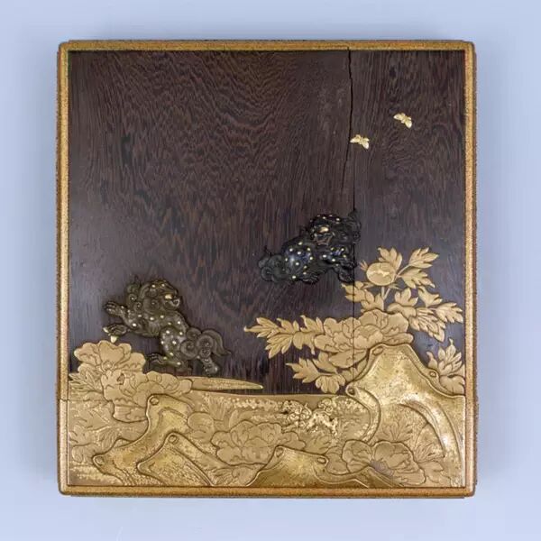 ▲以贝母为底洒金制作的莳绘漆器