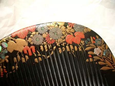 ▲采用莳绘工艺制作的发髻用插梳