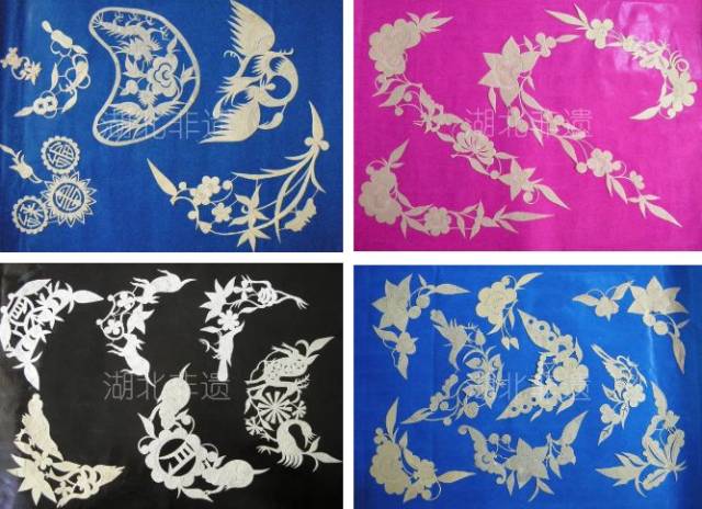 仙桃雕花剪纸流传于仙桃市一带,具有悠久的传承发展历史。据《沔阳县志》记载,仙桃剪纸在明末清初即已形成自己的风格特征,以构图匀称、雕工纤细见长。仙桃雕花剪纸制作时,由艺人用刻刀和白纸在蜡盘上雕出俗称“花样子”的绣花纹样,雕刻时一般可重叠一二十层白纸。刻刀多系以闹钟发条和手术刀加工而来,蜡盘则以菜油、白蜡及香炉灰合成物盛于小木圆盘中构成。