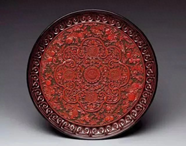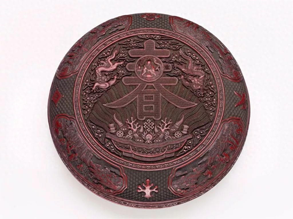 清乾隆 剔彩万岁长春漆盘 美国大都会艺术博物馆藏