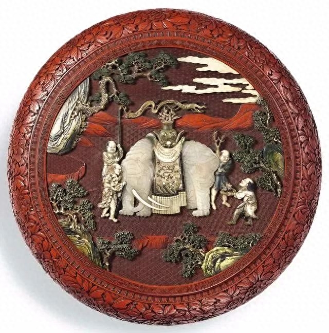清乾隆 剔红嵌宝太平有象盖盒