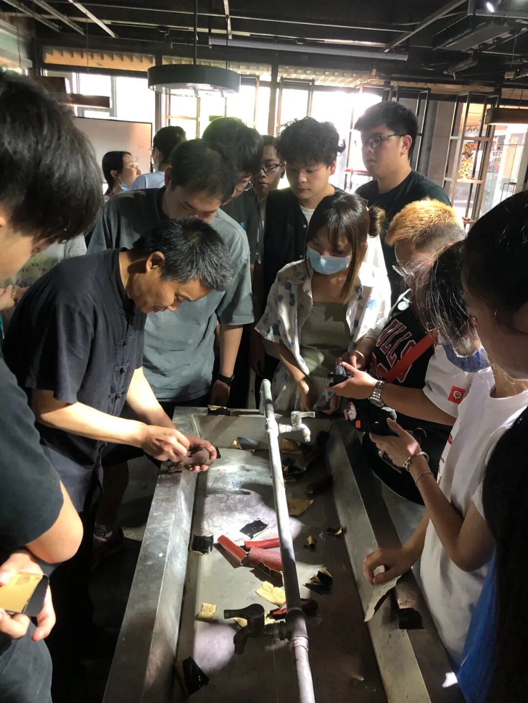邹传志为学生讲解演示楚式漆器髹饰技艺
