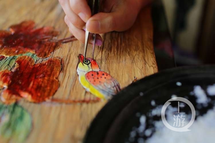 今天,王宗秀和陈芷月通过上游新闻呼吁年轻人重视重庆漆器,有兴趣、有恒心的爱好者想拜师,她们十分欢迎,“我招徒弟不收任何费用,而且也不用收材料费,有时候我还要倒贴材料的钱。但是你必须要坚持,人品一定要好,要有绘画基础。俗话说得好,先做人再做事。”