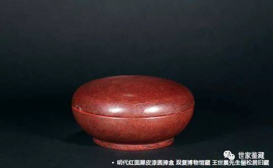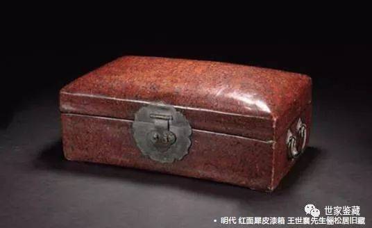 明代犀皮漆箱与犀皮漆圆盒是王世襄先生的心爱之物,内部髹饰朱漆,器表红黑相间,是研究明代犀皮的重要实物资料,两件犀皮漆器形与纹理符合时代特征,漆面肌理色泽包浆均为上品。