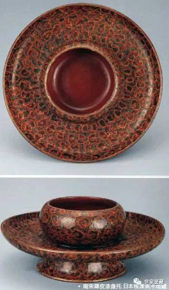 犀皮漆盏托,南宋,高8 厘米、径19.5厘米。购藏自藤泽繁,著录于日本根津美术馆2004年《宋元の美》