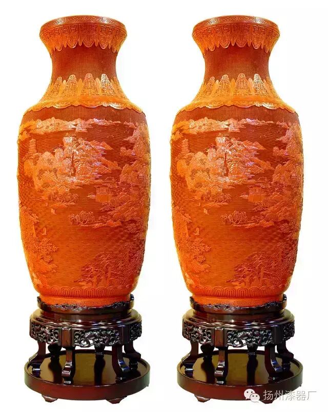 雕漆大花瓶《江天一览》