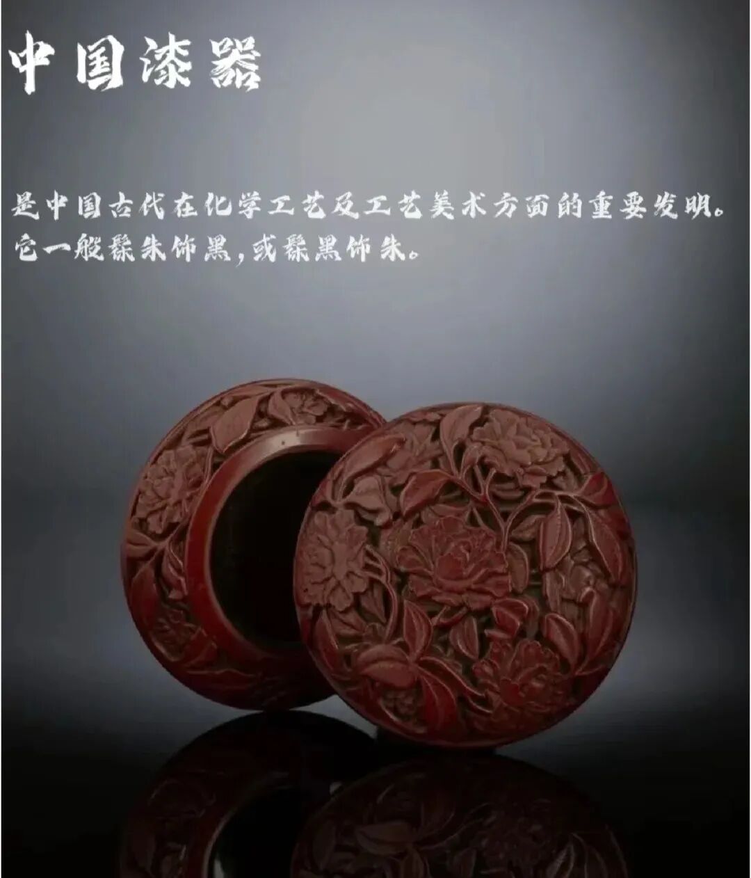 漆器是中国古代在化学工艺及工艺美术方面的重要发明。在中国,从新石器时代起就认识了漆的性能并用以制器。历经商周直至明清,中国的漆器工艺不断发展,达到了相当高的水平。