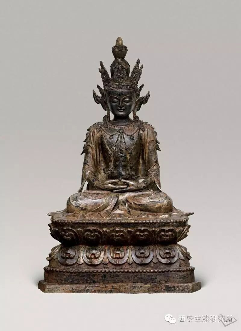 但是在2008年7月,有一件《淸·脱胎无量佛》,曾出现在崇源国际拍卖(澳门)有限公司中国古董专场,該件高310厘米,宽203厘米,当属罕见大件了,应是-件上乘之作,估价为1381500-2302500元,並不很高,但似乎未见买主。可見市埸目前尚缺欣赏干漆夹纻佛像之慧眼。
