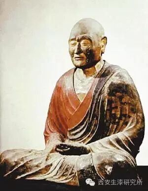鉴真一生刚毅,果断,安详,肃穆的神情毕现。高僧身披袈裟,衣褶柔和,双目闭合(东渡前己失眠)唇含微笑,双手叠放膝上.該像厚的地方,干漆夹纻有五~六层,薄的地方有三~四层,彩漆髹饰。另外,在日本唐昭提寺金堂中的卢那佛像,据传也是鉴真第六次东渡同去的弟子,扬州兴云寺僧义静所制。佛像高339cm,竹胎,干漆夹纻13层。