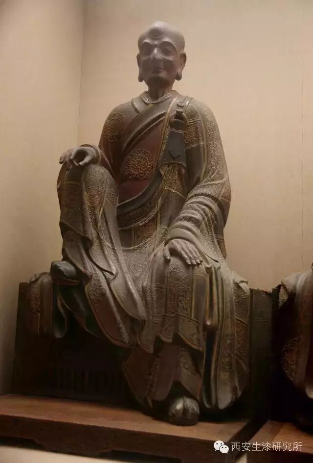 干漆夹纻工艺史载东晋时期就已经被应用在佛教造像上,据说是大约公元300年由东晋著名的画家,雕塑家戴逵发明。