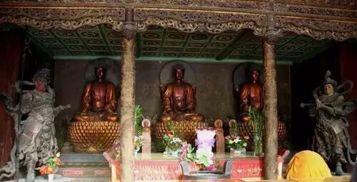 殿中供奉的主佛是释迦牟尼,造像高2.25米,通体髹金,面轮饱满,作闭目入定状