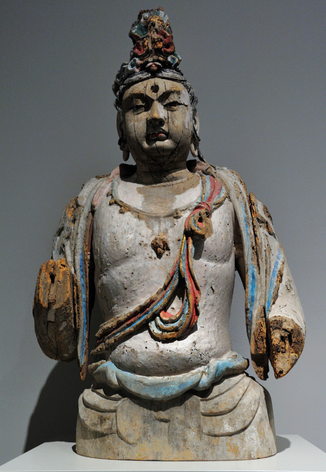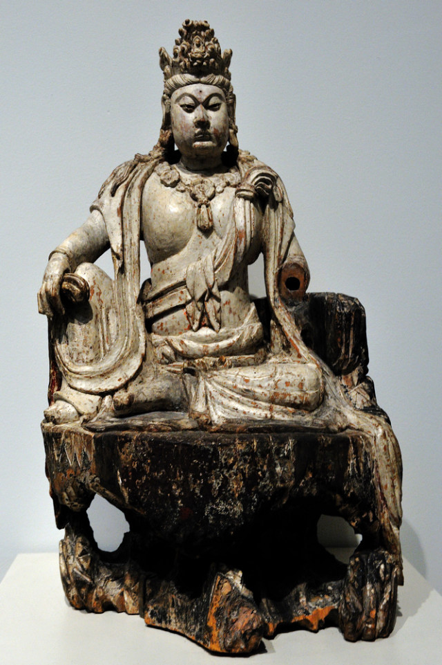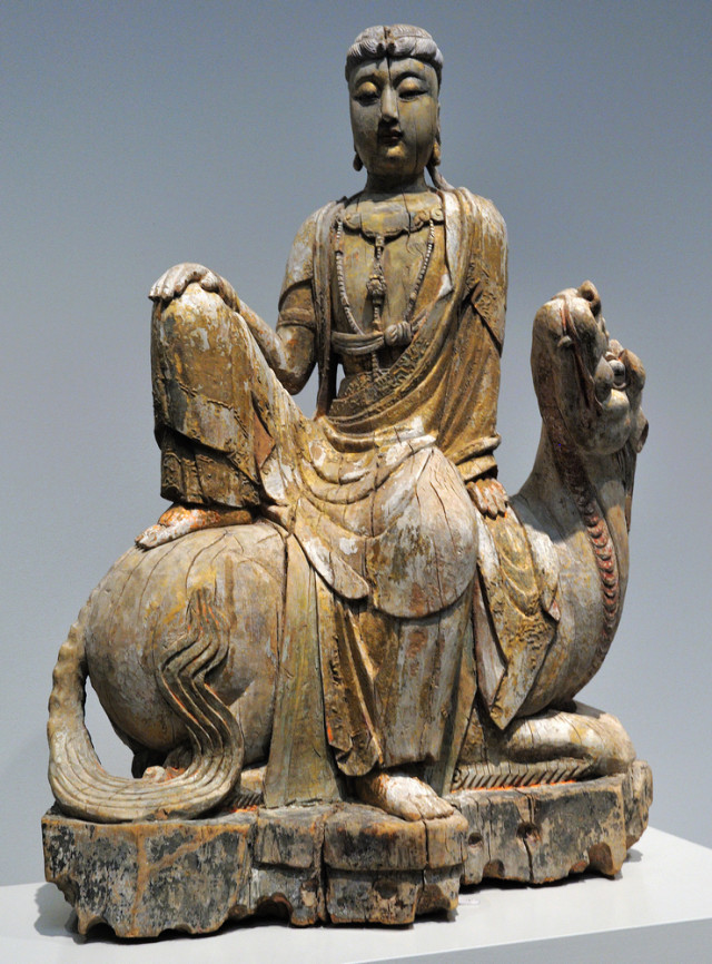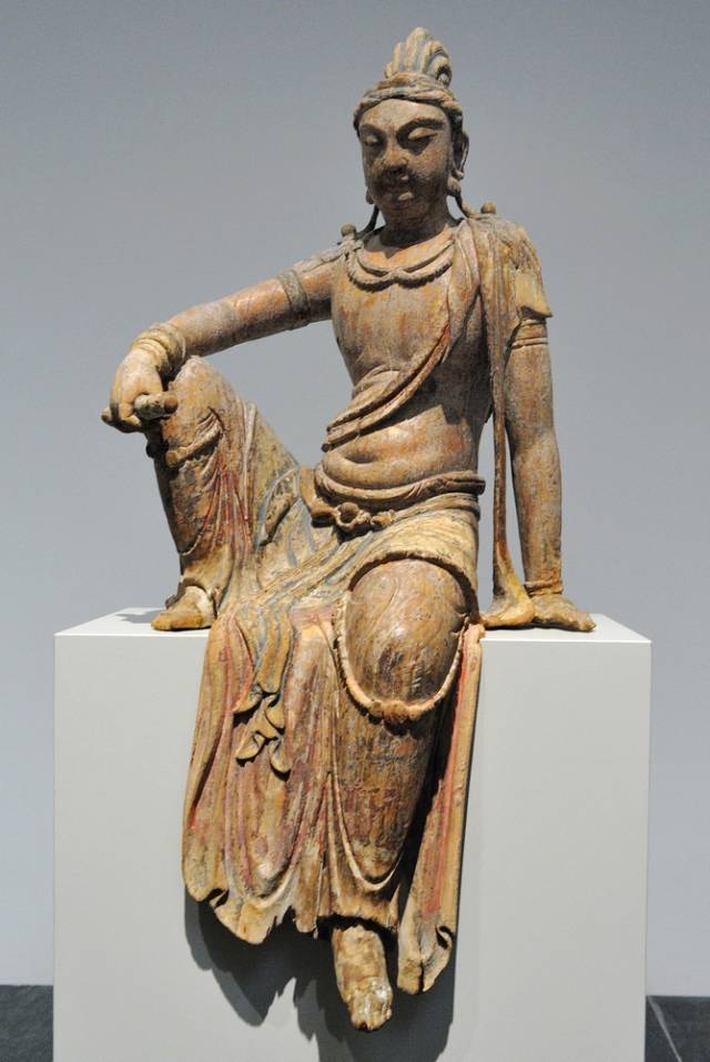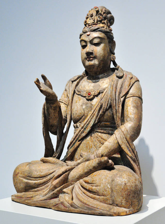 北宋彩绘木雕文殊菩萨像高109.2cm