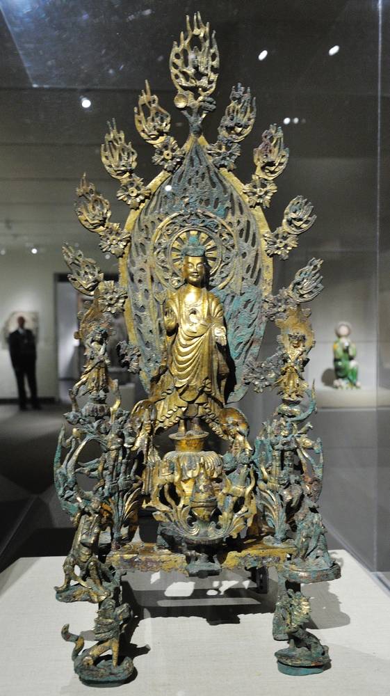 供奉弥勒佛像鎏金青铜祭坛 北魏 高76.8cm