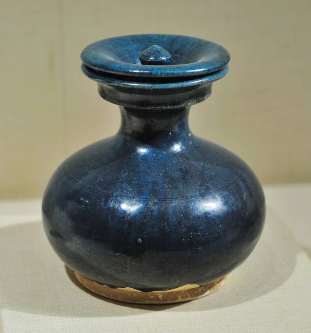 蓝釉瓷瓶 唐代 高16.5cm