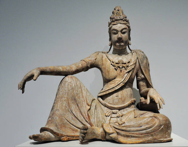辽代彩绘木雕水月观音像高118.1cm