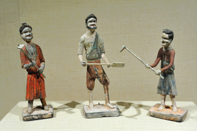 彩绘持锄男俑