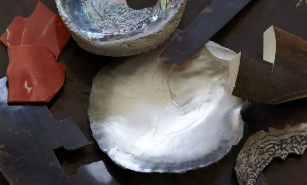 芝山镶嵌将贝类、牛骨等嵌入作品中,以立体的方式塑造花鸟及人物,再使用金、银、铜等有色金属,加之精湛雕刻,并以极其复杂的镶嵌技术加工而成。