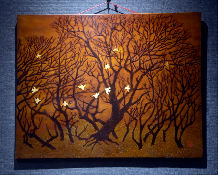 如果说典型的漆艺作品蕴含了更多传统的东西在里面,那么漆画则是和现代艺术结合更为紧密的一种表现形式。国内很多美术院校专门开设了漆画专业,漆画作品也常常在各种美术展赛中获奖。单从传承这个角度上来说,漆画或许是国内漆艺界里最不缺传人的部分。