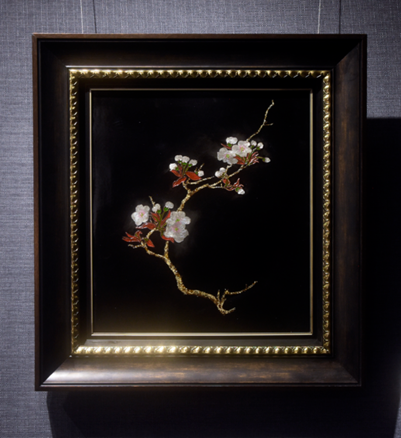 李俊峰作品《静》。花瓣部分为螺钿镶嵌。