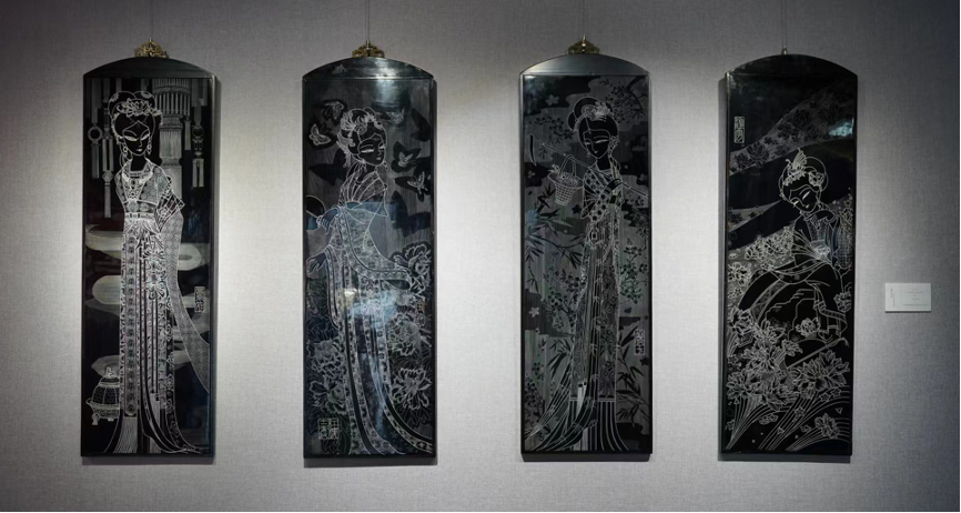 尹利萍作品《十二金钗系列》。线条部分运用了成都漆艺“三雕一刻”中的拉刀针刻技法。