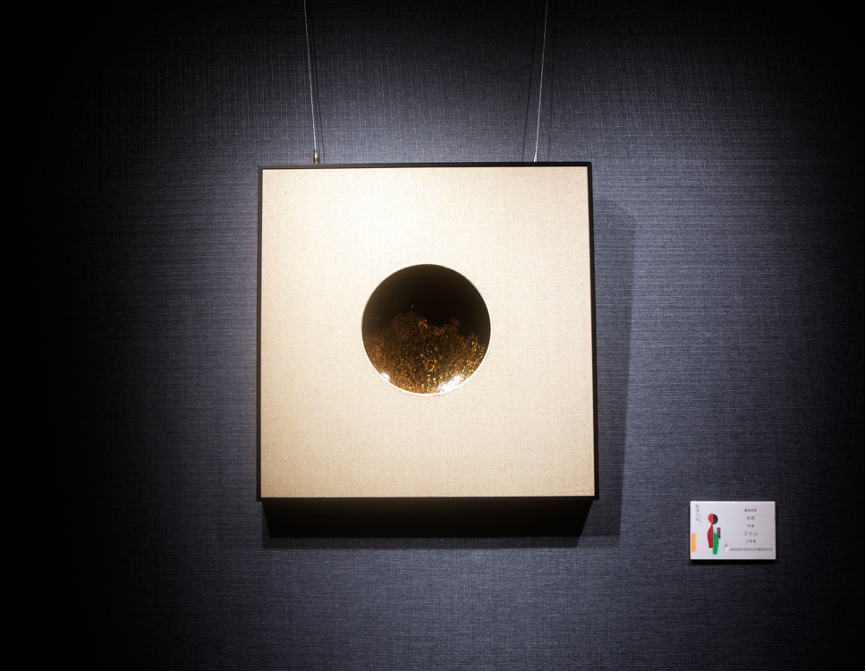漆画在本次“漆以固交—武侯区中外名家漆艺联展”中其实占了不少篇幅,但好像很容易被人忽视。大家的视线更容易聚焦于各种瓶瓶罐罐、盘盘碗碗之上,或许潜意识里会觉得立体的东西一定比平面的东西更复杂、更能说明技艺的高低。