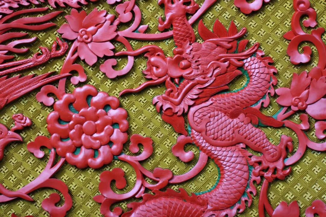 李小龙说,一件大型且工艺精湛的雕漆作品能卖到几十万元甚至上百万元,2011年他曾参与制作的2M*3M华西村壁画售价达到80万,还曾有人出高价以雕漆工艺刻画出四大神兽作为建筑空间的装饰吊顶,深沉典重,华丽堂皇。