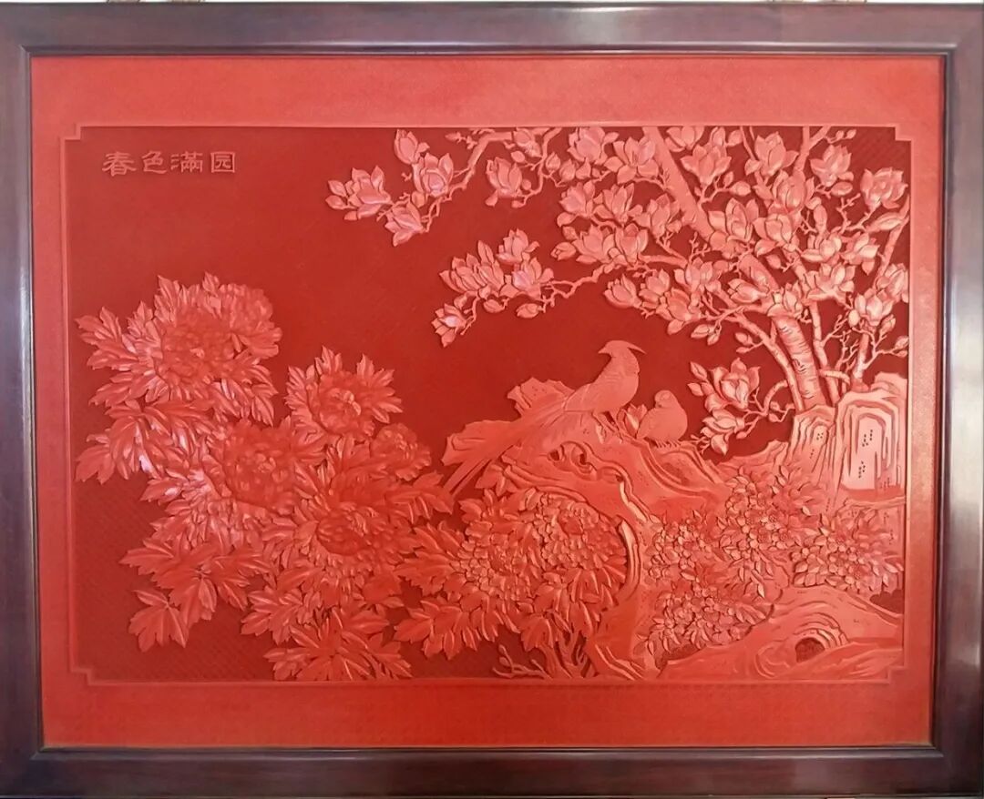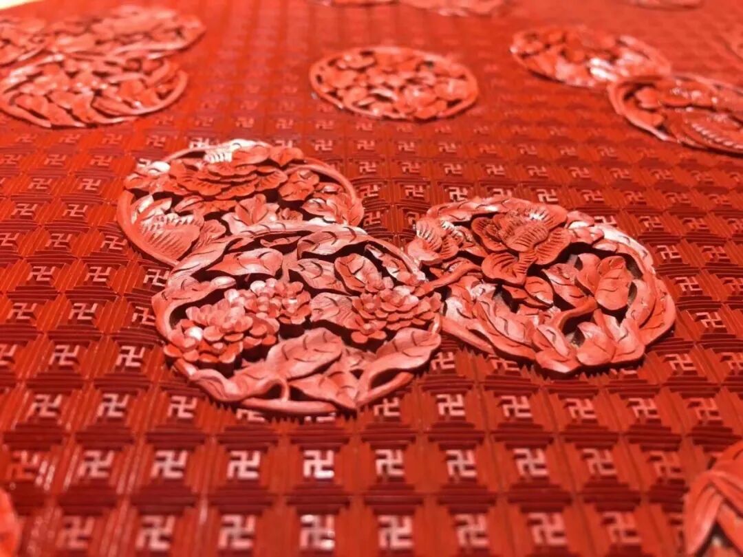 从品鉴角度来说,雕漆极富艺术与审美价值。千年来,红色一直是中原大地文化的底色,当空幽的山水、灵动的花鸟、威武的走兽、精致的建筑、灵动的人物镌刻在细致、繁密、规整的锦纹之上,古风荡漾,将中华文化的精髓穿越古今的血脉一展芳华,折射出传统艺术文化的无尽之美。