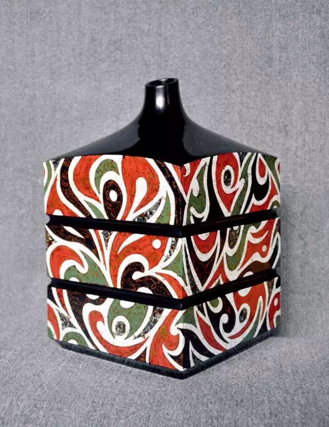 随着长期的学习与时间,陈天灨逐渐形成了属于自己的鲜明风格,在传统漆器的精致和唯美中,融入了明快的线条、色彩与几何图案,即传统又现代。