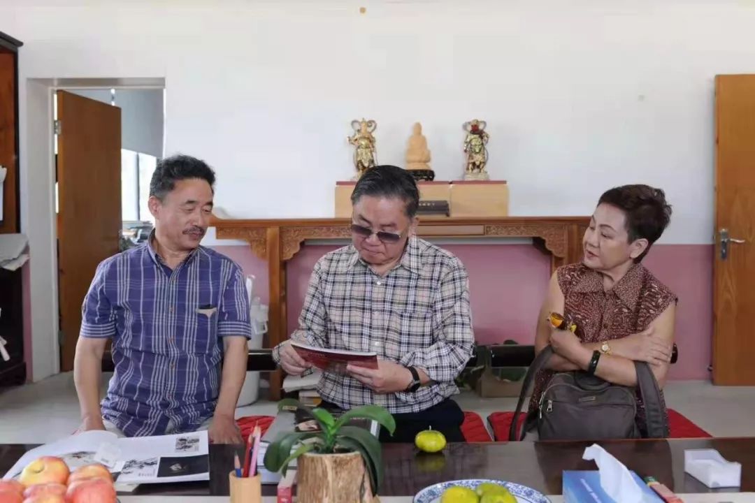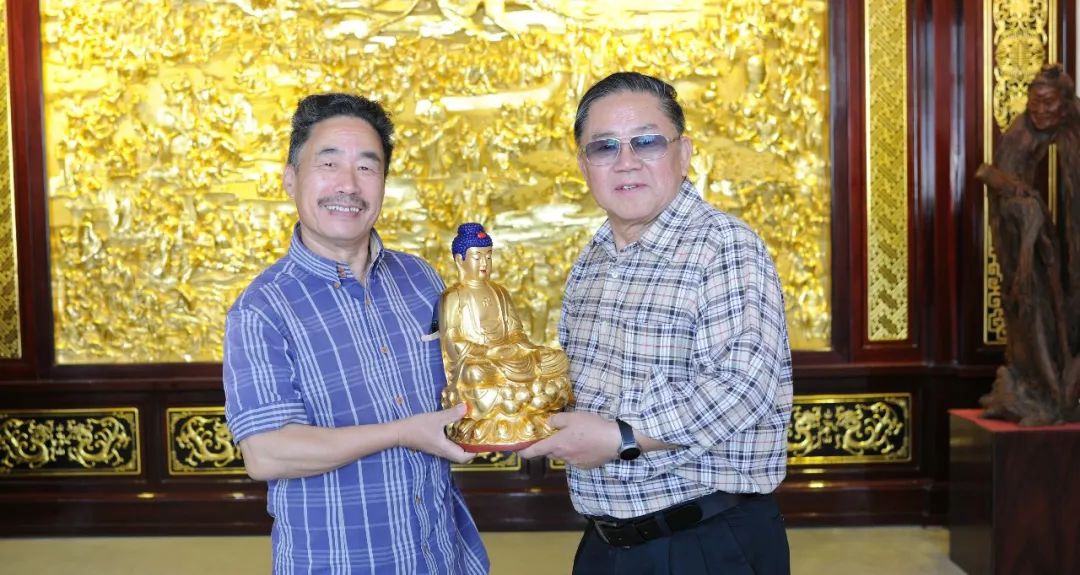 近日,天台山宗教艺术研究所迎来了一位特殊贵宾,他是泰国前副总理奇猜·万那沙提(中文名:陈奇猜),奇猜先生信仰佛教,对中国佛像艺术研究颇深,在朋友交谈时得知天台有一位民间佛雕大师徐俊贤,这次他慕名而来,兴致勃勃地参观了天台县徐俊贤文化名家工作室及佛像艺术馆。对佛像艺术造型和制作方面进行了交流,徐俊贤老师以一尊国家级非遗——干漆夹苎佛像作品和一本《造像艺术》相赠。