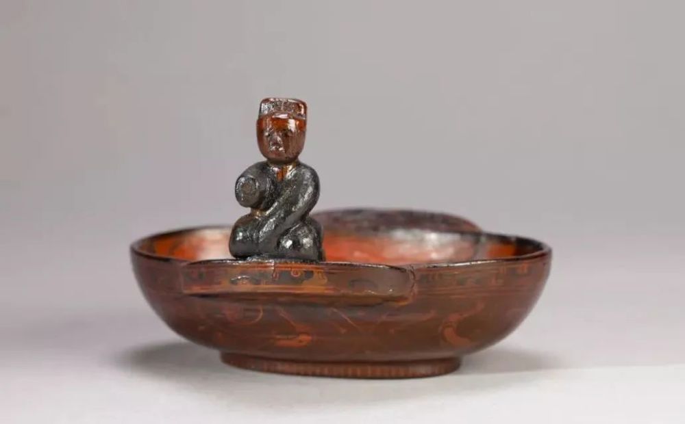 西汉 彩绘龙纹立雕人像漆耳杯