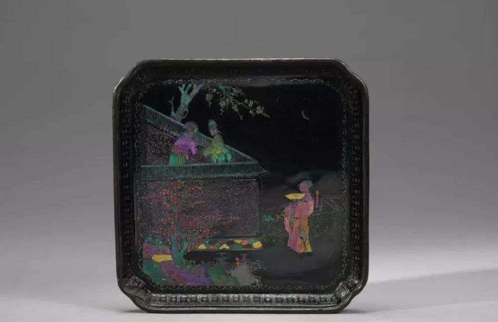 螺钿工艺分厚螺钿和薄螺钿两种类型。厚螺钿镶嵌始于西周时期,至唐代乃臻妙境。宋元时期螺钿工艺精进,钿片渐薄,佳作迭出。主要景物所嵌钿片呈块状,并以浅刻表现人物的神态、衣纹等,花草精细密致,意境如画。明代螺钿名目更多,纹彩更繁,螺钿工艺迎合市场需求,呈现五色纷缊、光彩夺目的视觉效果。清代螺钿精益求精,尤善区分壳色,钿片薄如蜂翼,细若秋毫;普遍采用点螺工艺,局部片嵌金花,细填螺锦;其构图、配色模拟书画趣味,随彩而施,光华可赏。